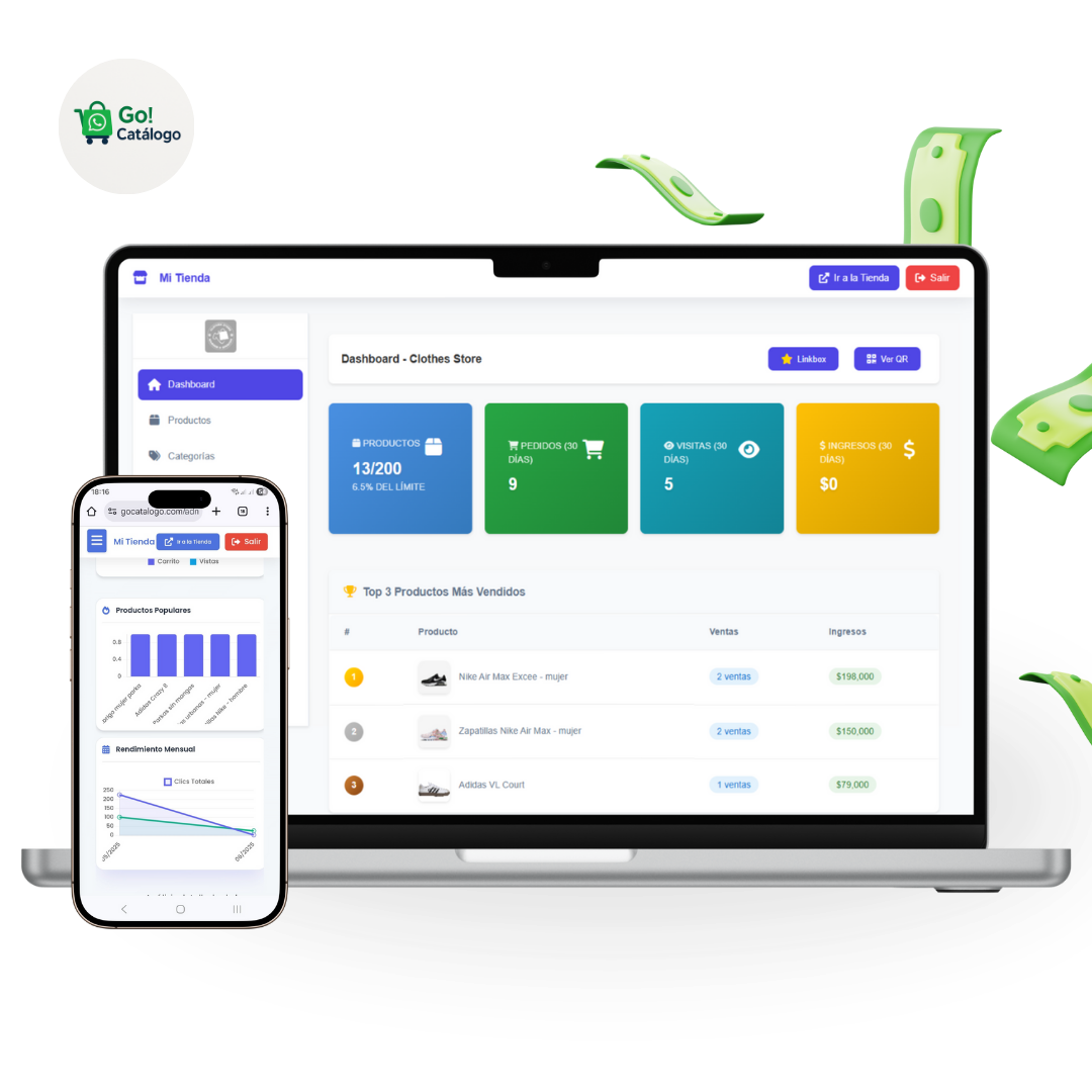 Tendrás acceso a un panel completo para gestionar todos tus productos, actualizar precios, imágenes y descripciones, así como ver estadísticas de interés y desempeño de tu catálogo.